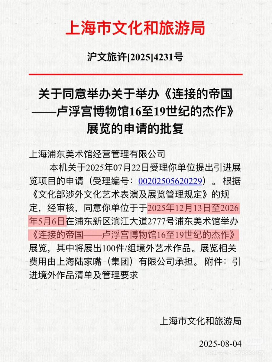 最近,上海市文化和旅游局的回应淹没了社交网络的屏幕。该批准通过了展览项目“连接的帝国 - 卢浮宫博物馆的史密斯台,从16日到19世纪”,由朴艺术博物馆提出,这使许多人如此兴奋。批准表明,卢浮宫艺术博物馆的卢浮宫展览将于2025年12月13日至2026年5月6日举行,并将在国外聚集100件艺术品。刚才,Wenhui Daily的一名记者联系了布丁美术馆,以确认展览的消息。这意味着在热门展览“现代性创造:来自巴黎奥萨博物馆的艺术珍品”之后,水坑艺术博物馆将带来令人惊叹的 - 示例介绍。根据博物馆的说法,卢浮宫盛大展览展览的pblear和确定时间可能需要进行其他调整。展览集中在印度,伊朗和奥斯曼文化文物,不参与流行的公开著名油漆。展览的详细信息于9月正式宣布。